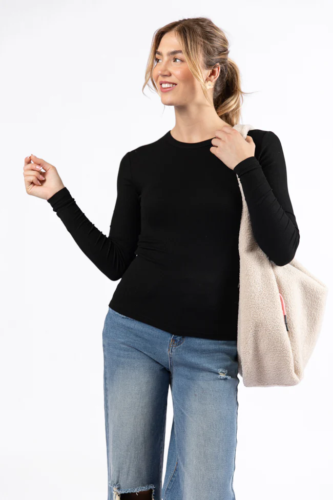Make Your Choice Black Ribbed Long Sleeve Tee FINAL SALE