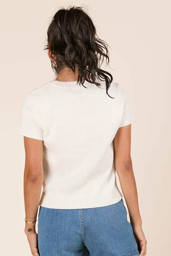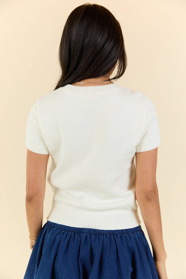 Made For Celebratin' Ivory Americana Short Sleeve Bear Sweater FINAL SALE