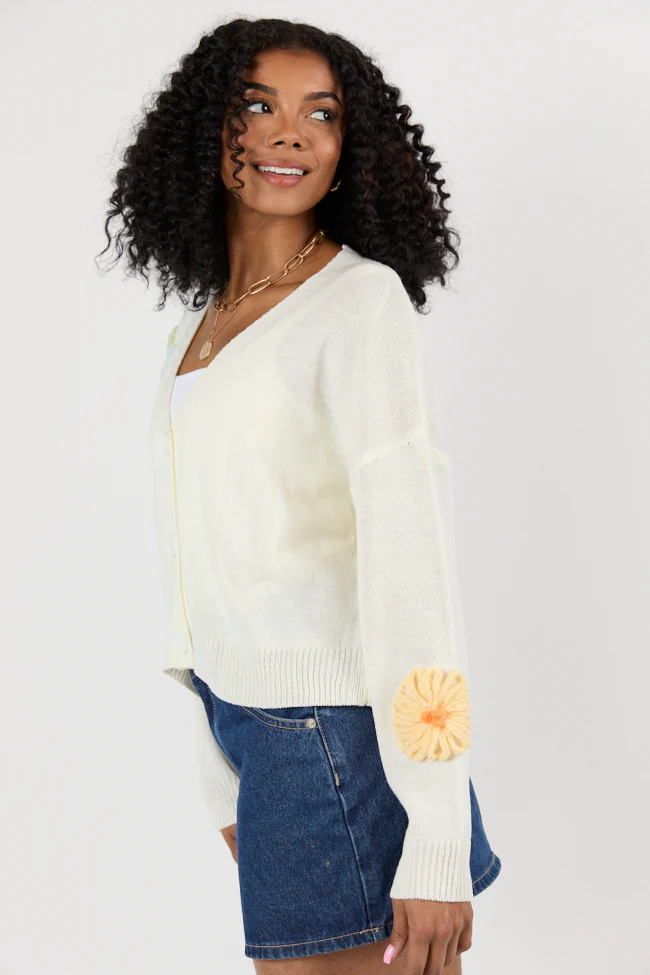 Made My Mark Ivory Multi Floral Embroidered Cardigan FINAL SALE