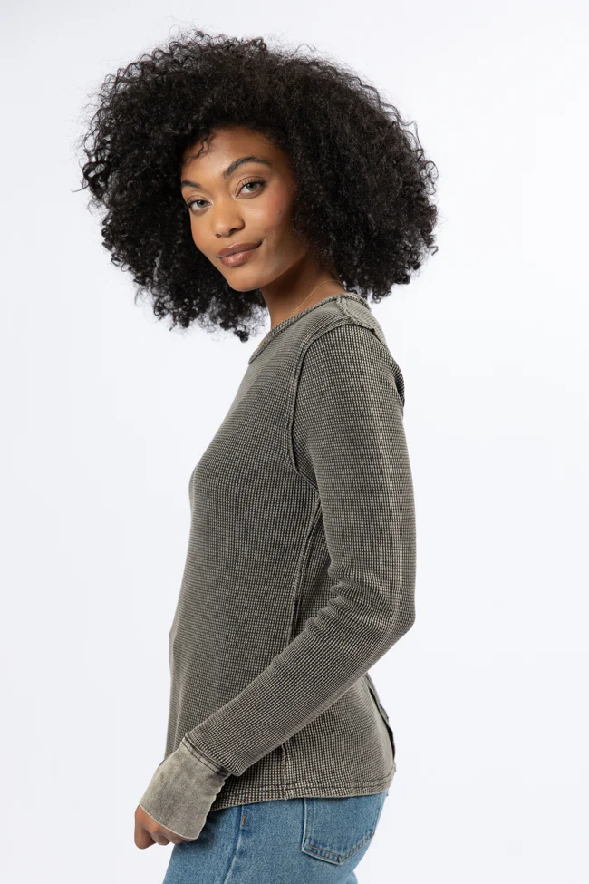 Make Your Choice Black Acid Wash Waffle Fitted Tee