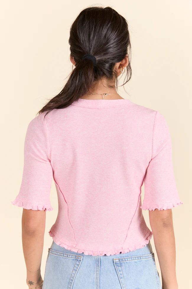 Makes Me Happy Pink Lettuce Trim Cardigan