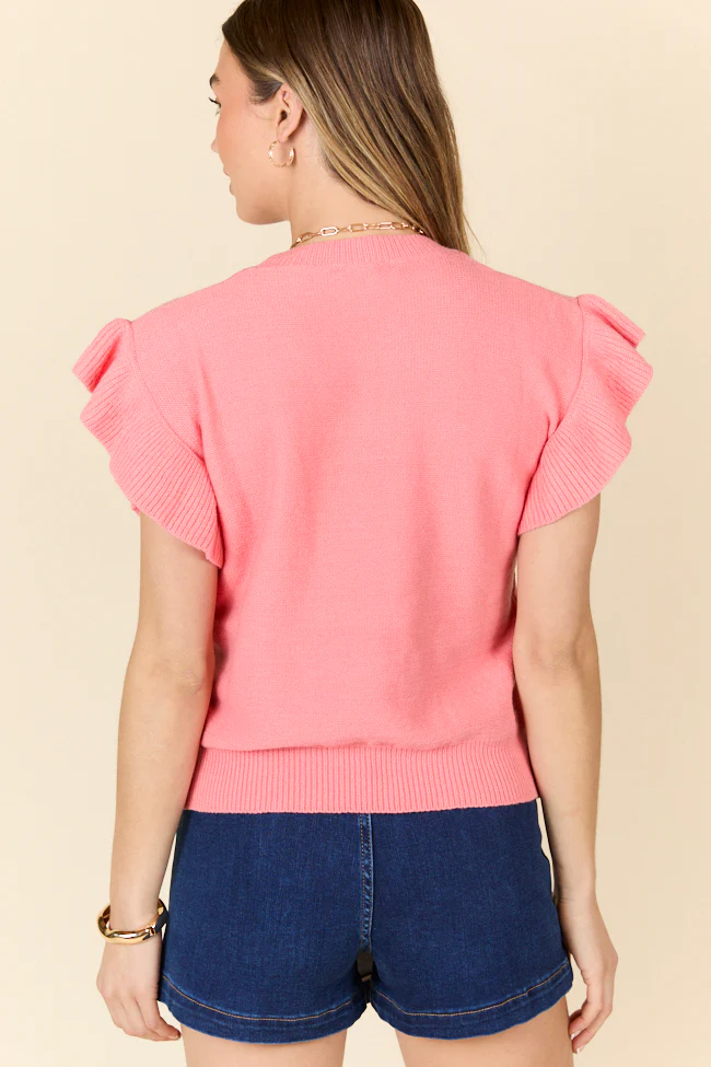 Make A Statement Coral Ruffle Short Sleeve Sweater DOORBUSTER