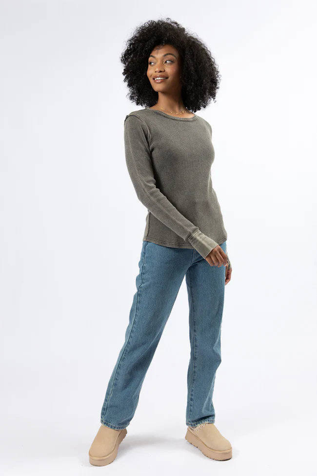 Make Your Choice Olive Ribbed Scoop Neck Long Sleeve Tee FINAL SALE