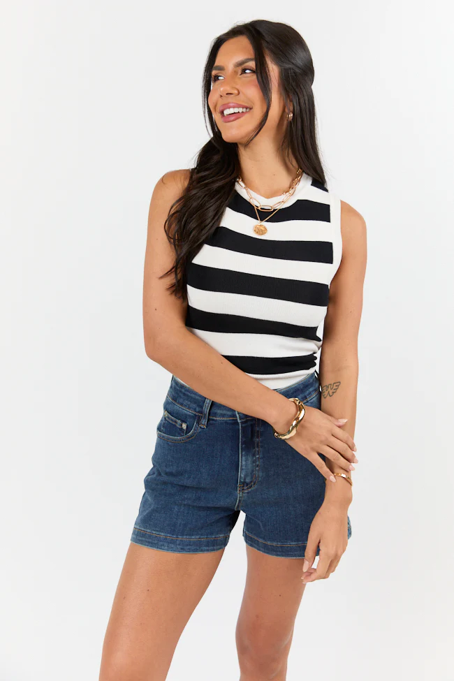 Let's Go Abroad Black Striped Crew Neck Sweater Tank