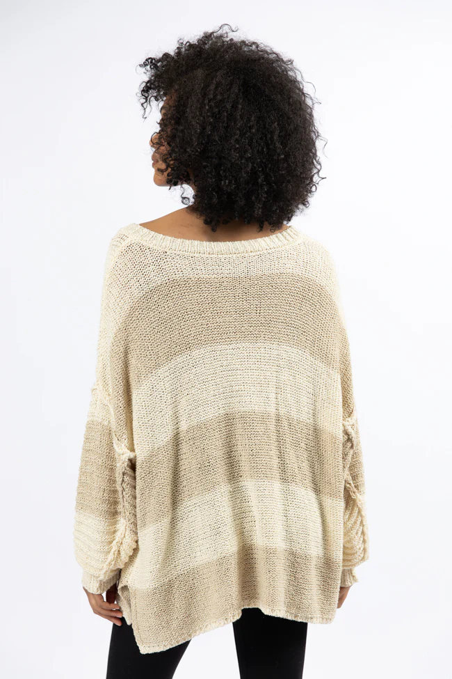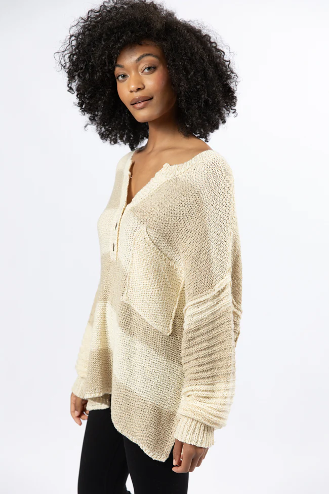 Know You Best Beige Oversized Striped Henley Sweater