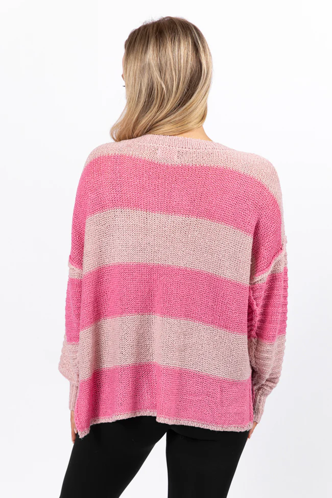 Know You Best Pink Oversized Striped Henley Sweater