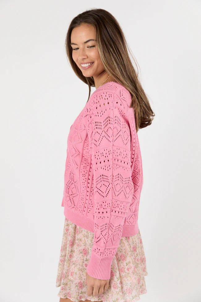 Lasting Impressions Pink Open Knit Cardigan FINAL SALE