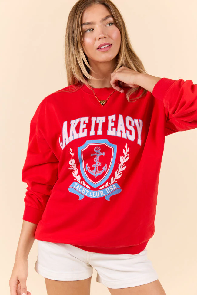 Lake It Easy Red Graphic Sweatshirt