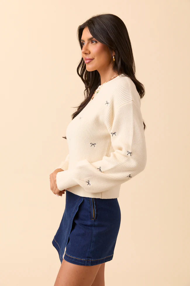 Leila Bow Ivory Pullover Sweater