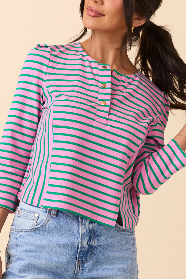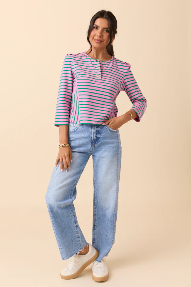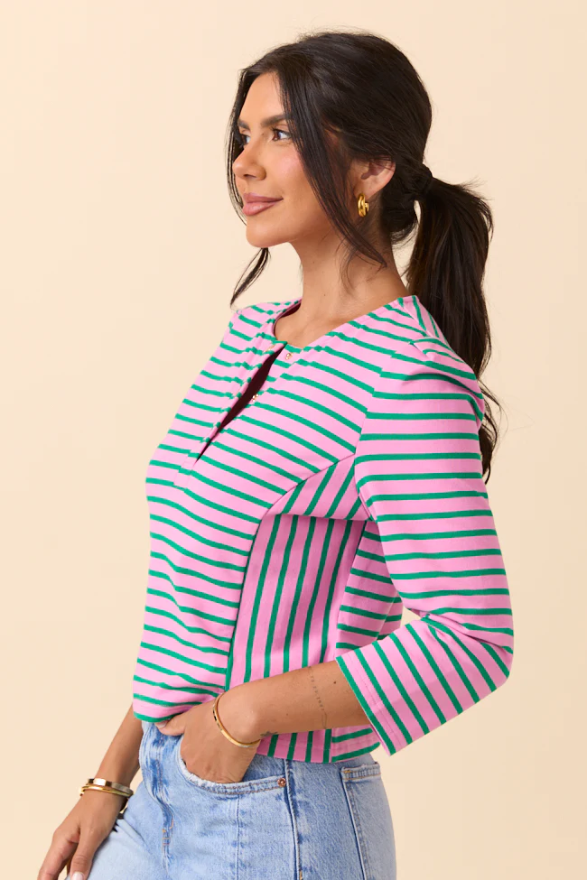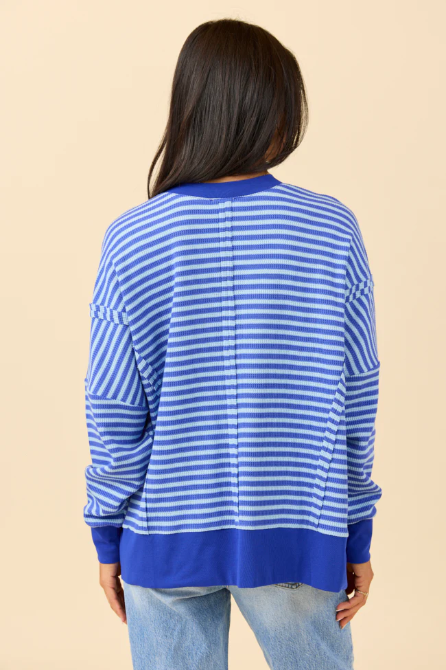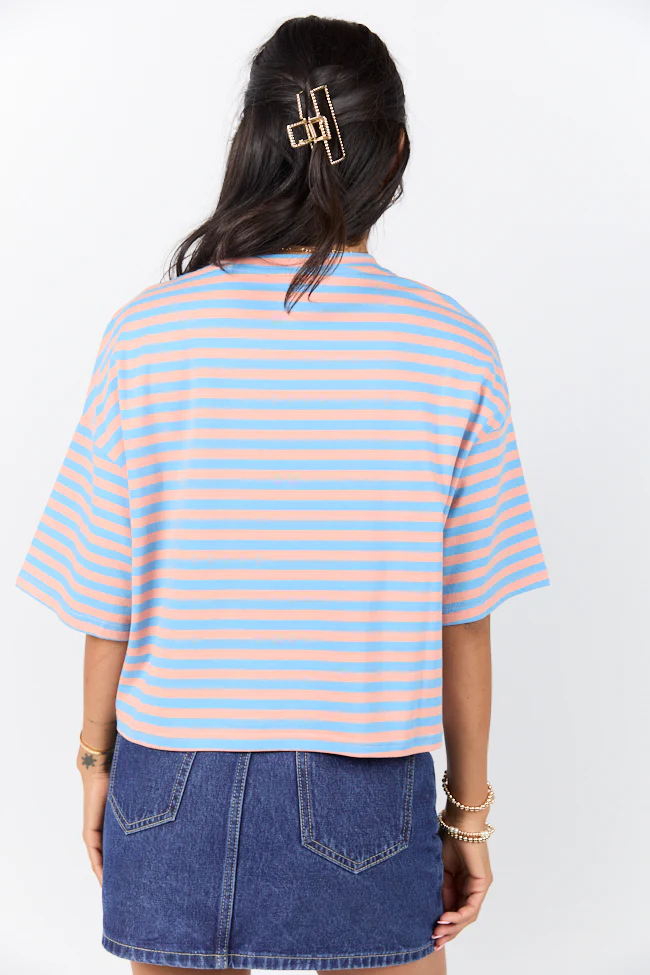 Keep It Casual Blue and Coral Multi Boxy Striped Tee DOORBUSTER