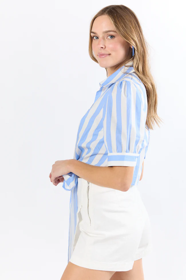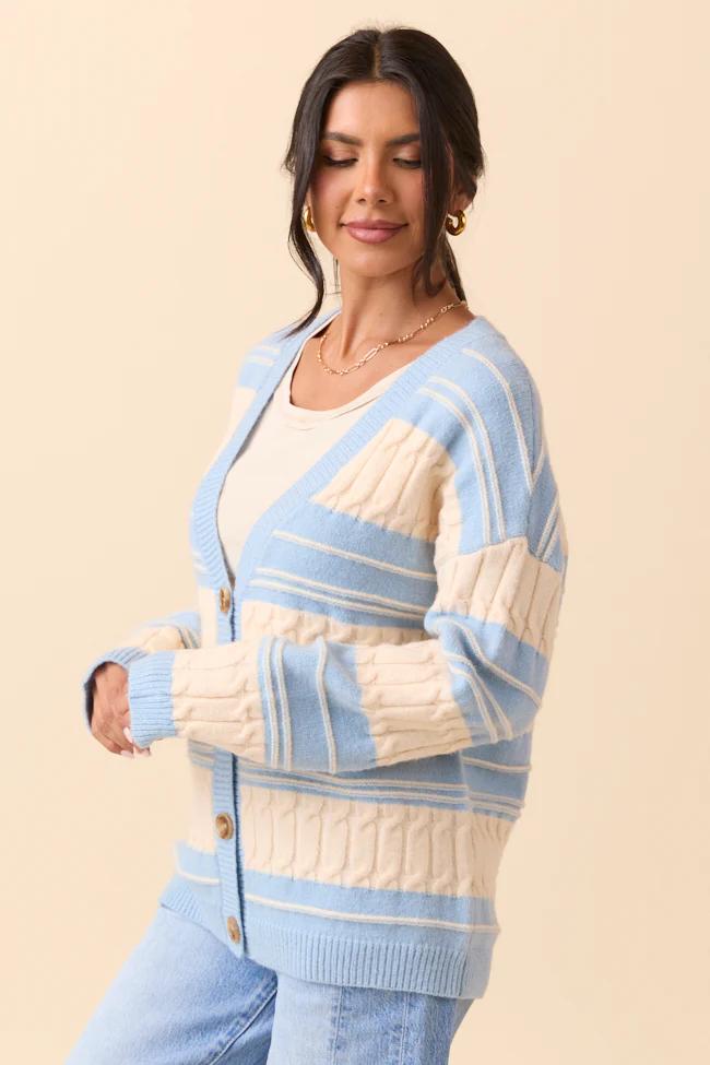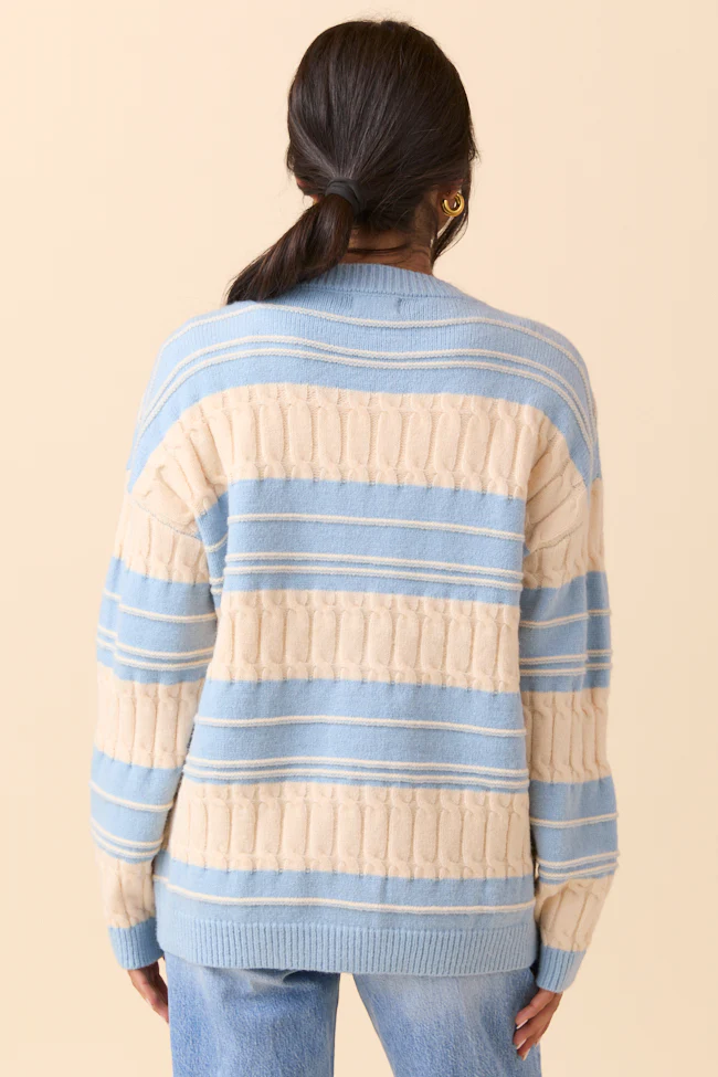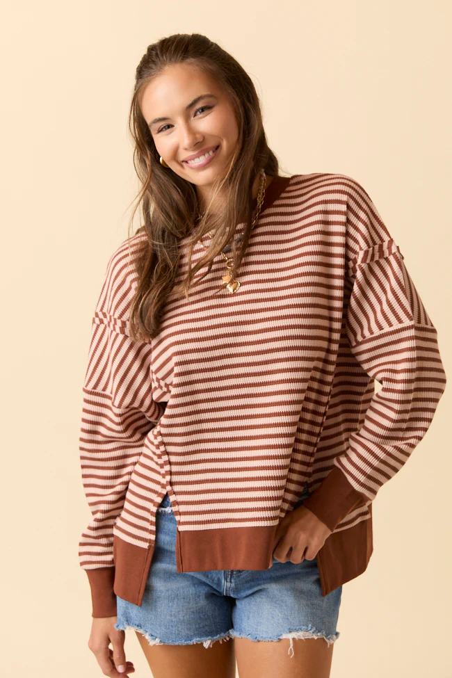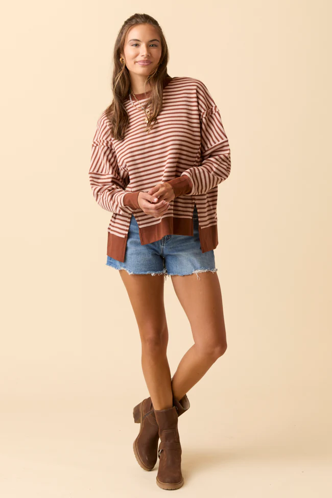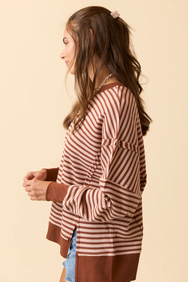 Keep It Casual Blue and Coral Multi Boxy Striped Tee DOORBUSTER