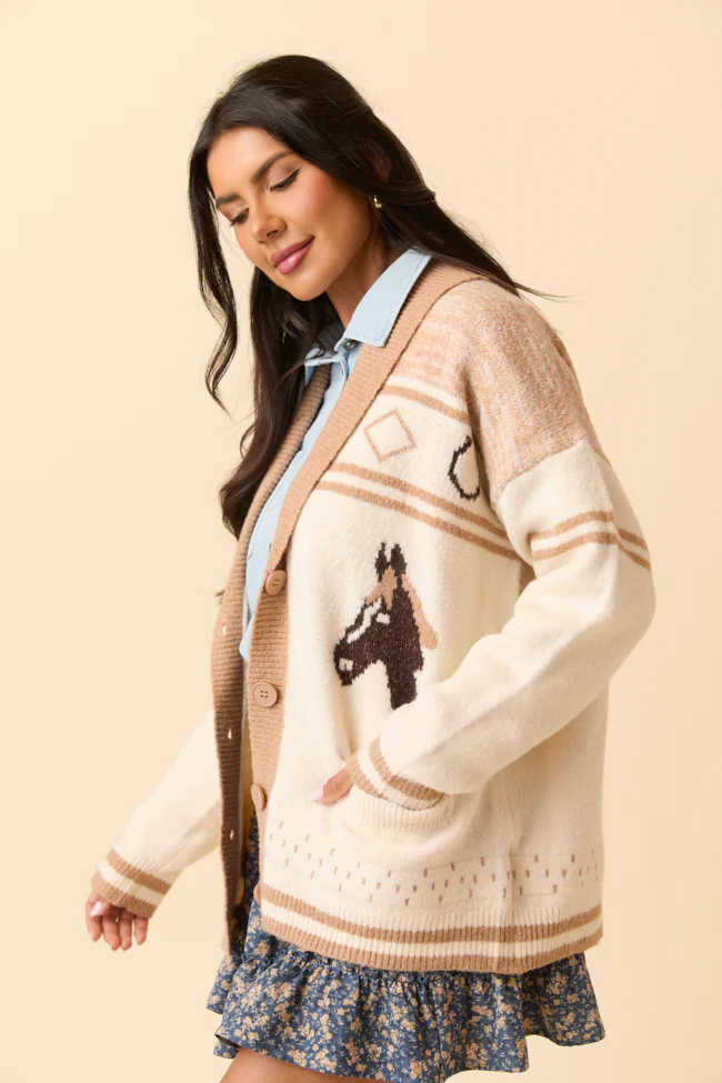 Karsyn Tan Horse Cardigan Just Classically Cassidy X Pink Lily