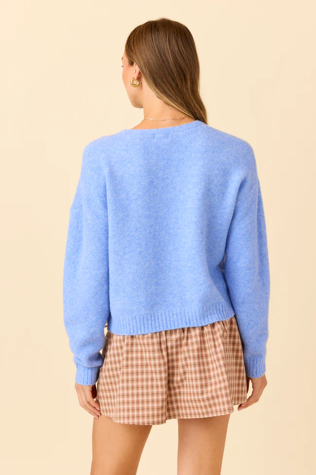 Just Imagine It Light Blue Bow Crewneck Long Sleeve Sweatshirt
