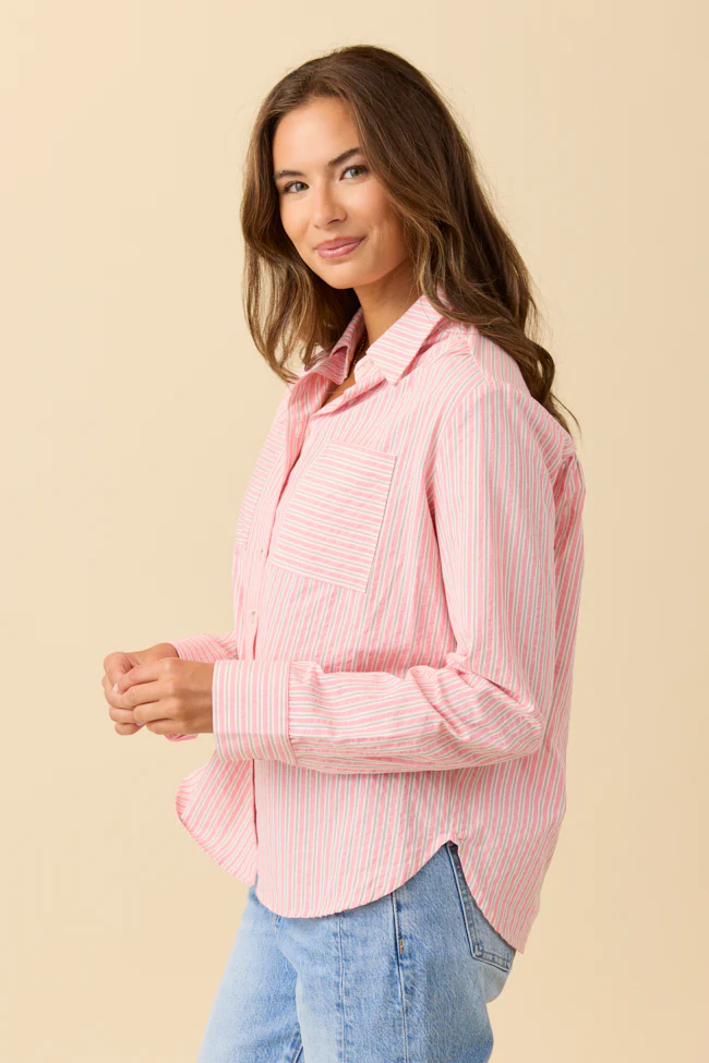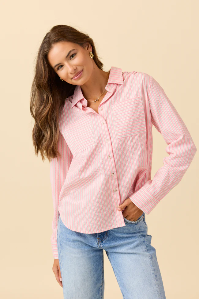 Just Focus Ivory Florette Long Sleeve Shirt FINAL SALE
