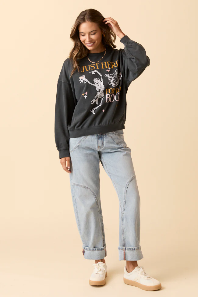 Just Here For The Boos Washed Black Graphic Tote Bag