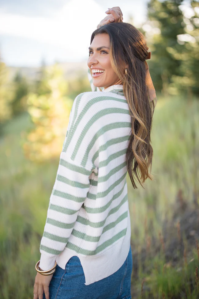 Keep On Shining Olive And Cream Striped Turtleneck Sweater FINAL SALE