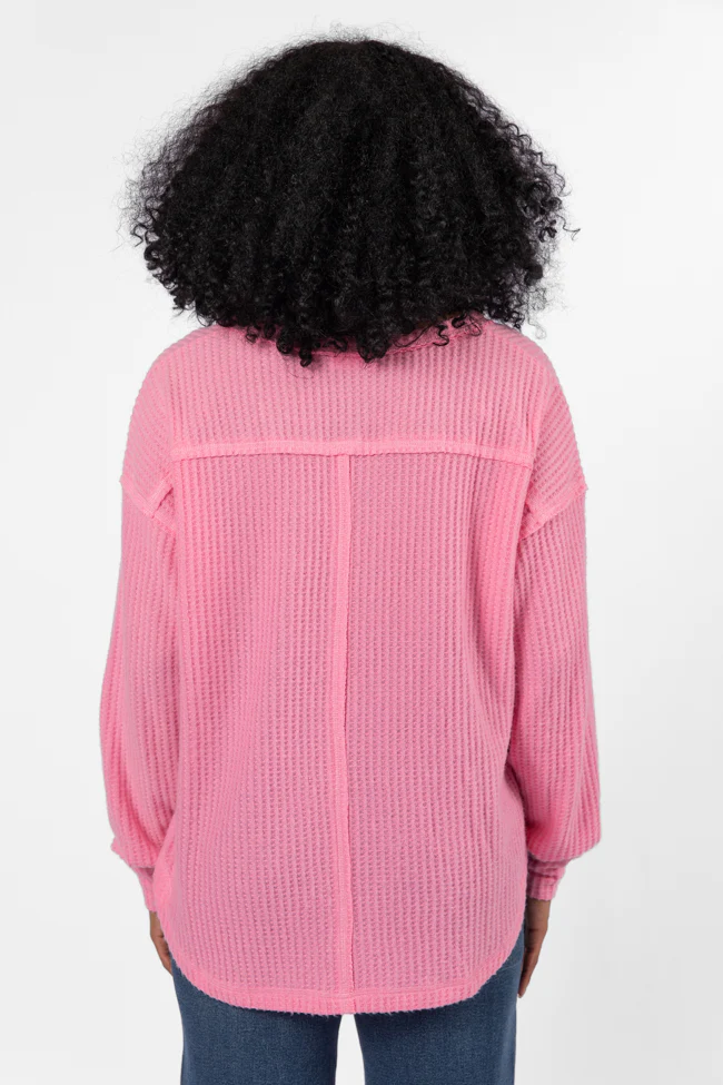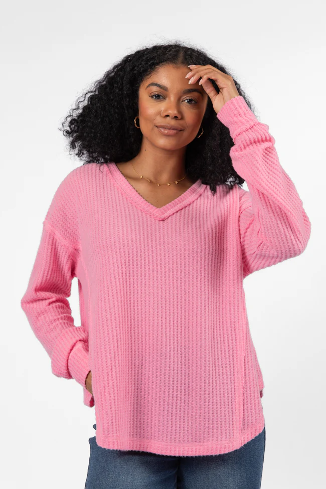 Idle Hands Pink Waffle Knit V-Neck Oversized Knit Top FINAL SALE