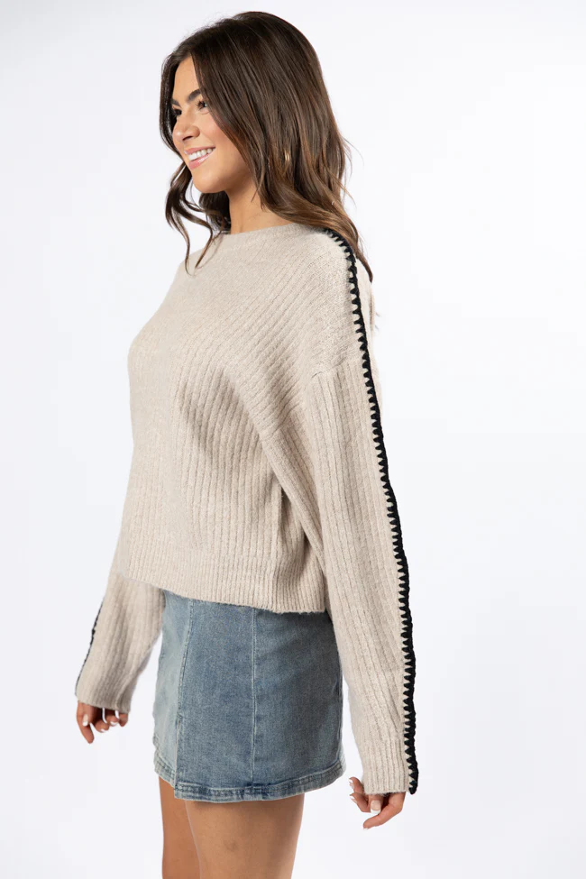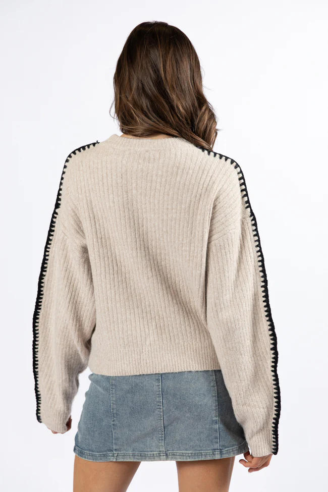 In and Out Taupe and Black Contrast Stitch Sweater FINAL SALE