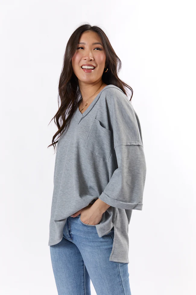 It's Our Time Grey Oversized Pocketed Waffle Tee FINAL SALE