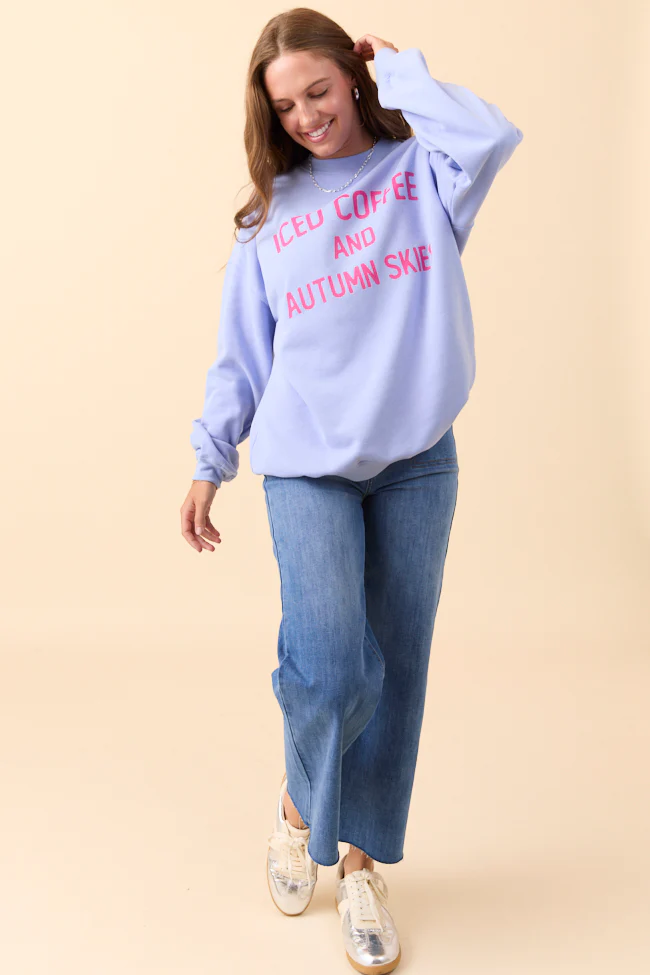 Iced Coffee And Autumn Skies Periwinkle Graphic Sweatshirt DOORBUSTER