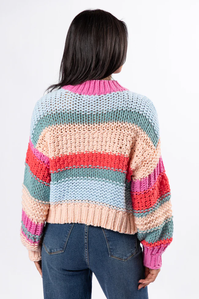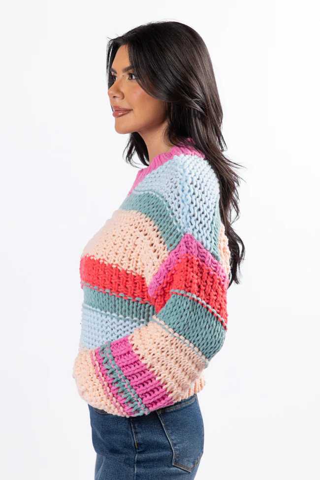 In Line Peach Multi Chunky Striped Sweater DOORBUSTER