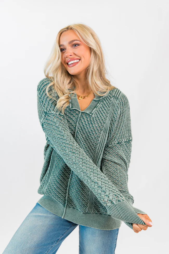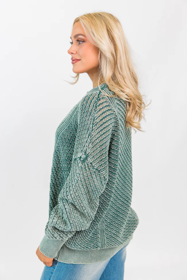 It's Too Easy Olive Acid Wash Sweater FINAL SALE