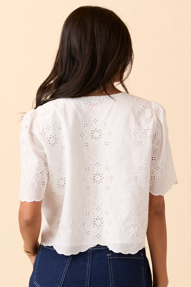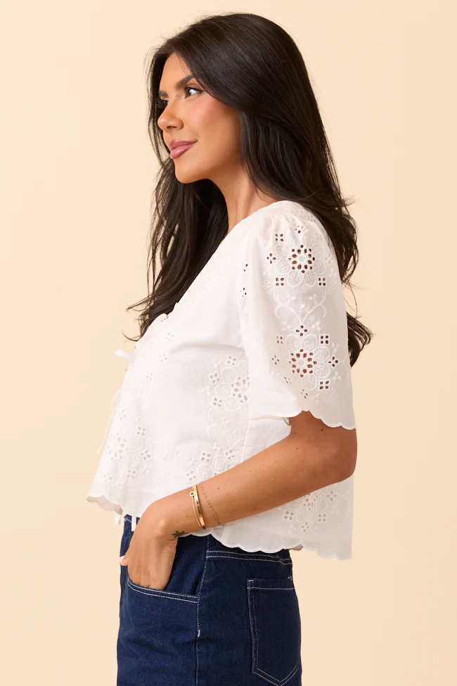 Island Dreamer Ivory Tie Front Eyelet Blouse SALE
