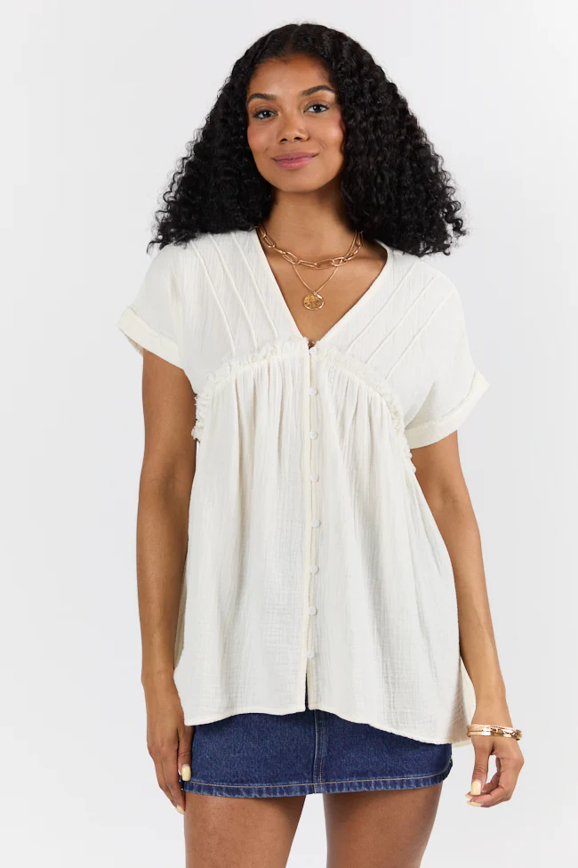 If I Knew Ivory Gauze Button Detail Short Sleeve Top FINAL SALE