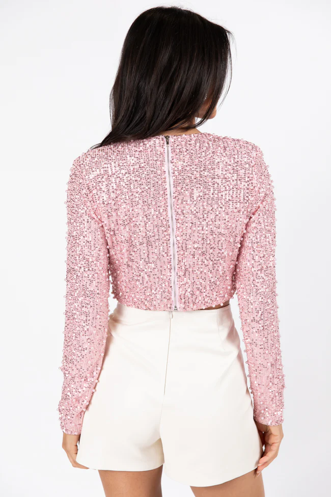 In Good Spirits Pink Pearl And Sequin Embellished Crop Blouse FINAL SALE