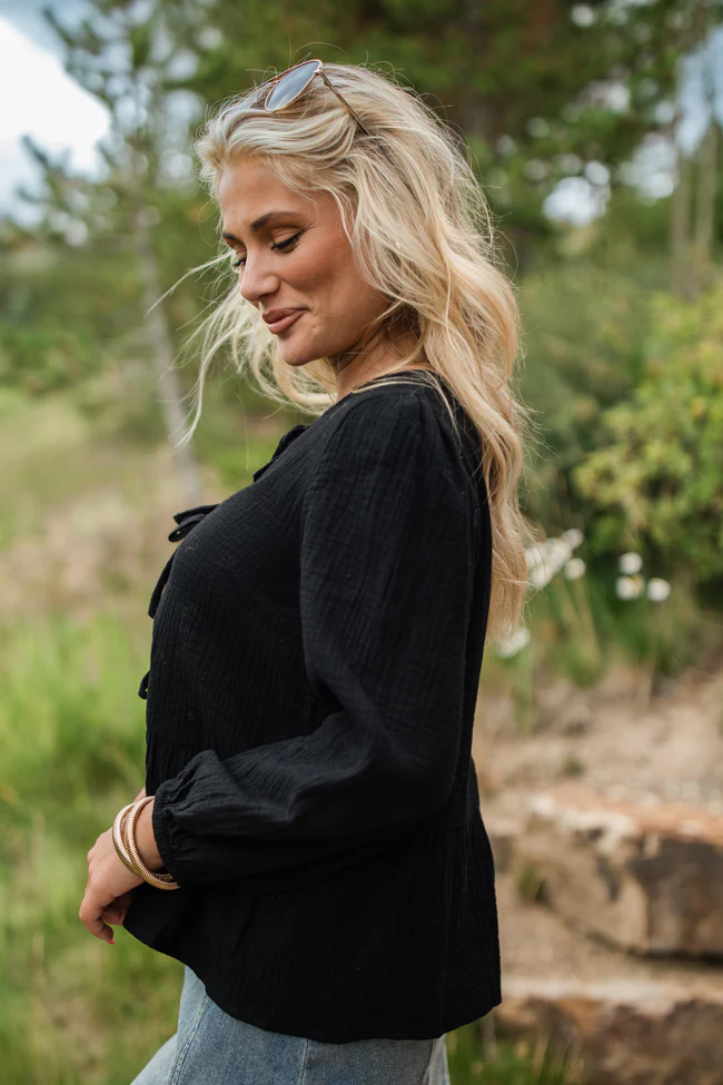 Close To Me Black Bow Detail Blouse FINAL SALE