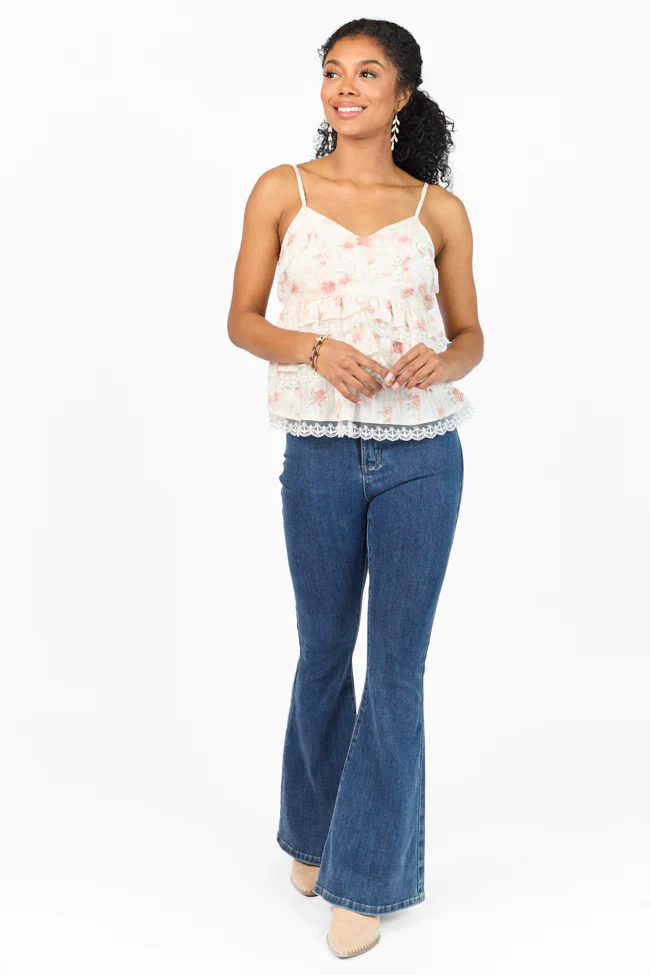 Come Out In The Wash Cream Multi Lace Tiered Floral Tank SALE