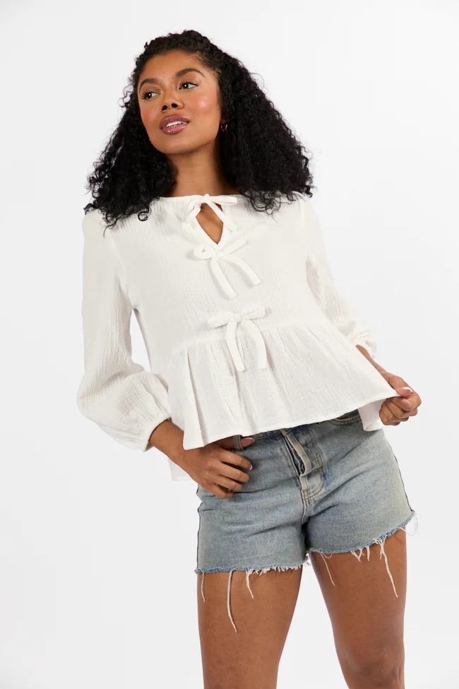 Close To Me Ivory Bow Detail Blouse FINAL SALE