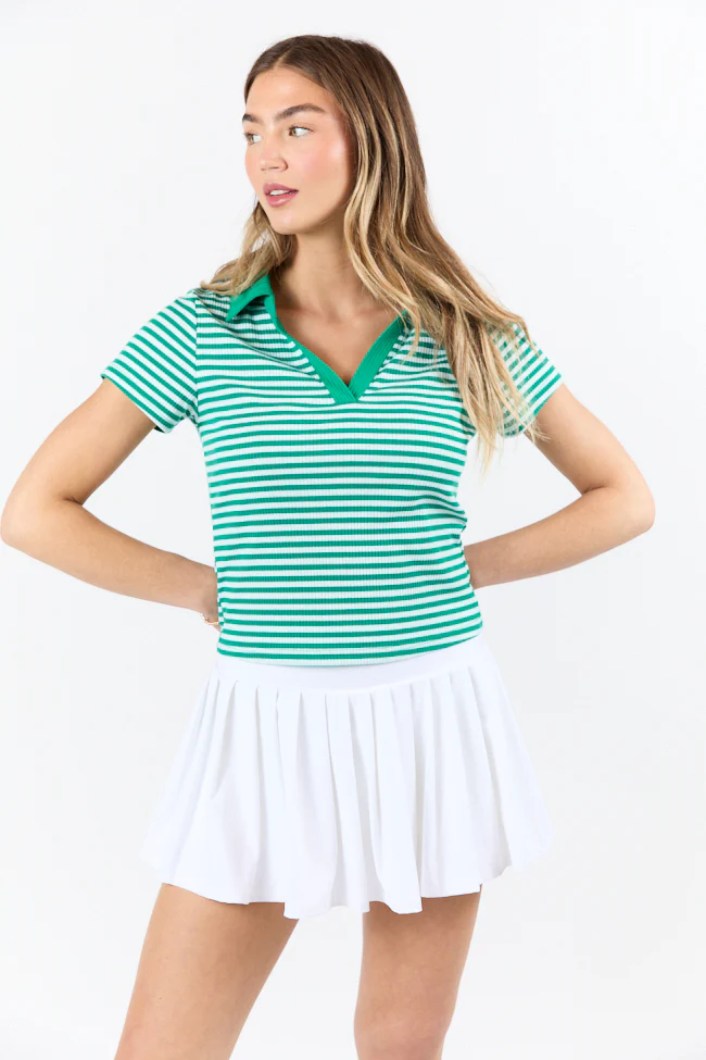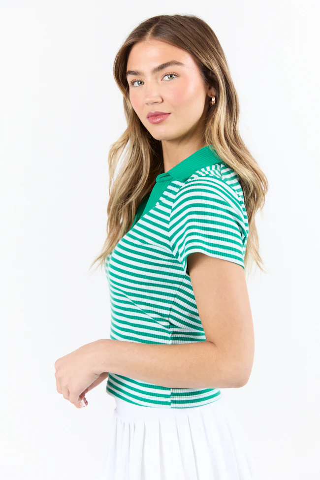 Beyond The Season Green Striped Knit Polo Tee