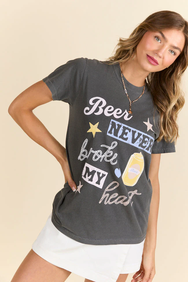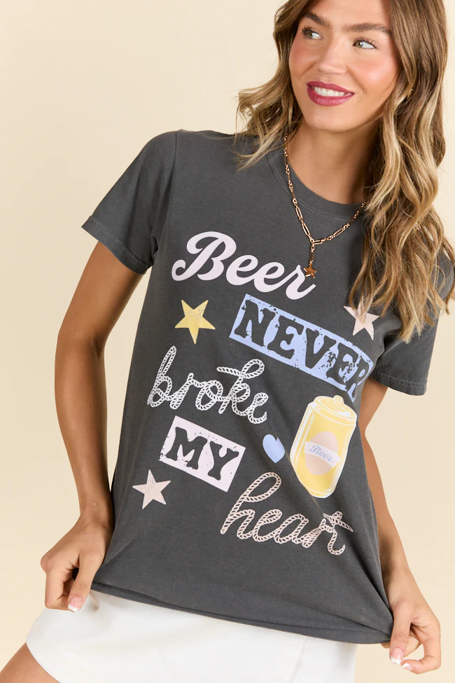 Beer Never Broke My Heart Dark Grey Graphic Tee