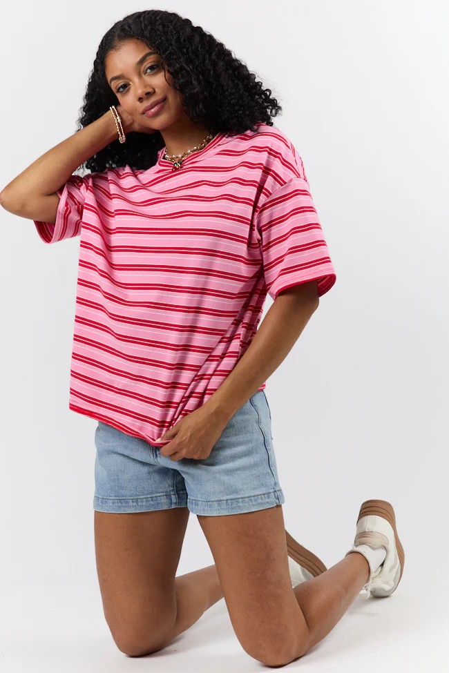 Between The Lines Pink and Red Oversized Striped Tee DOORBUSTER