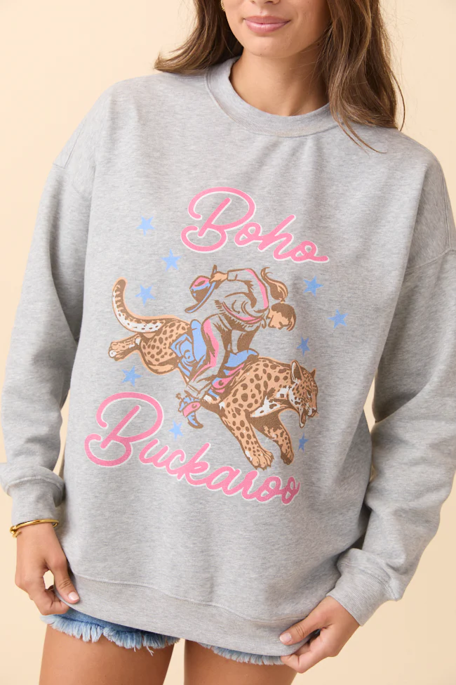Boho Buckaroo Light Grey Graphic Sweatshirt Just Classically Cassidy X Pink Lily