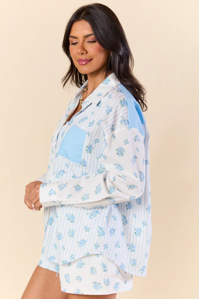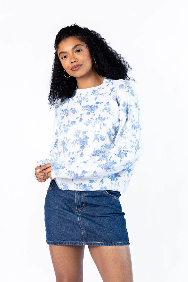Blooming Love Blue Crew Neck Floral Sweater FINAL SALE