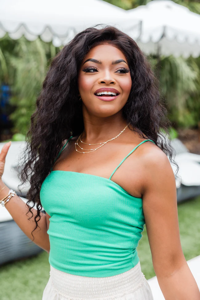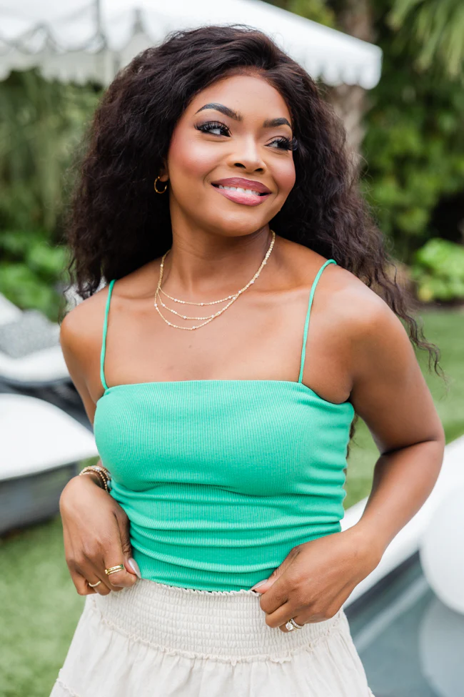 Behind The Times Green Ribbed Square Neck Brami Tank FINAL SALE