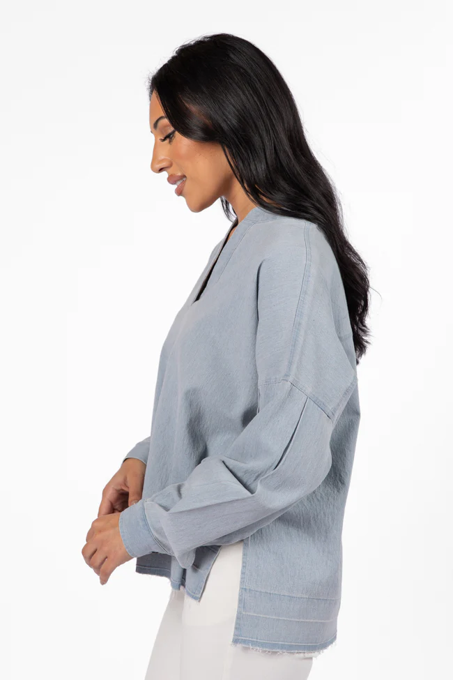 Before Daylight Light Wash Chambray Blouse FINAL SALE