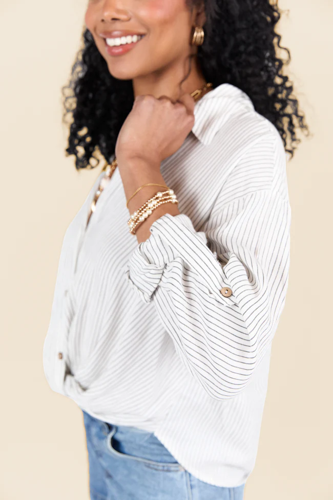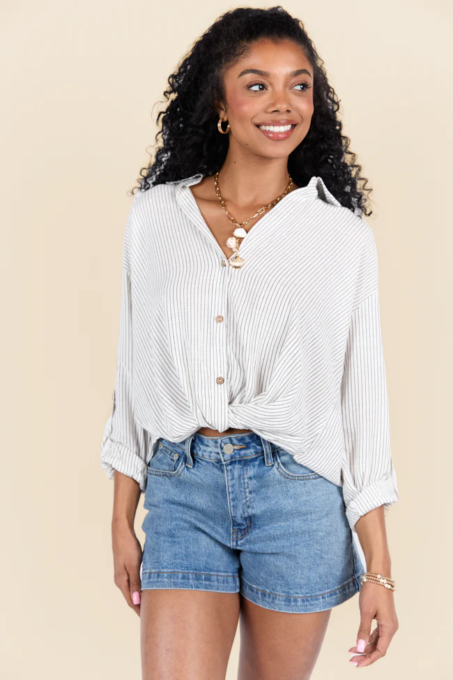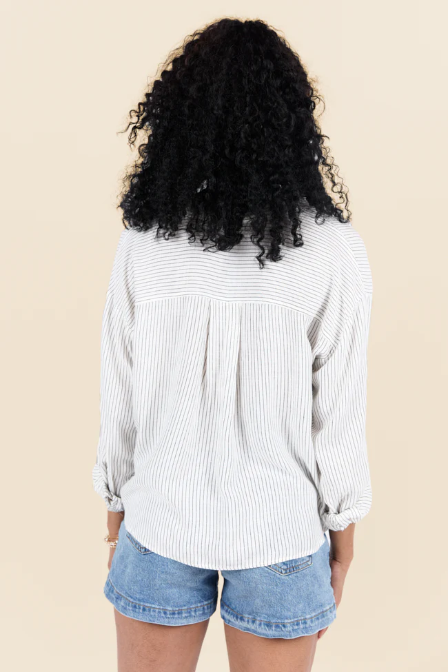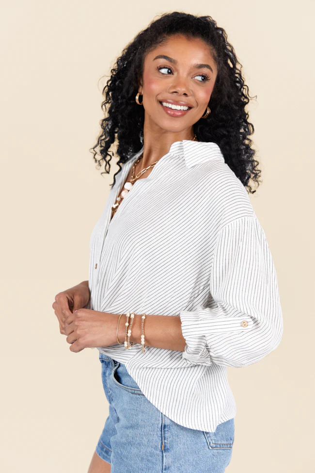 Twist Of Fate Black and White Stripe Button Down Top SALE