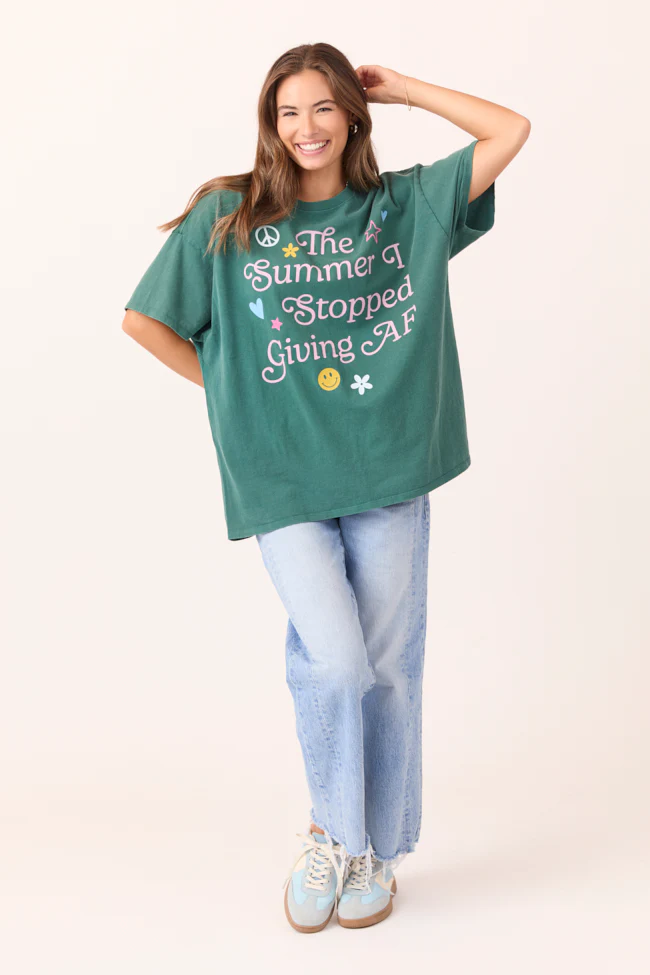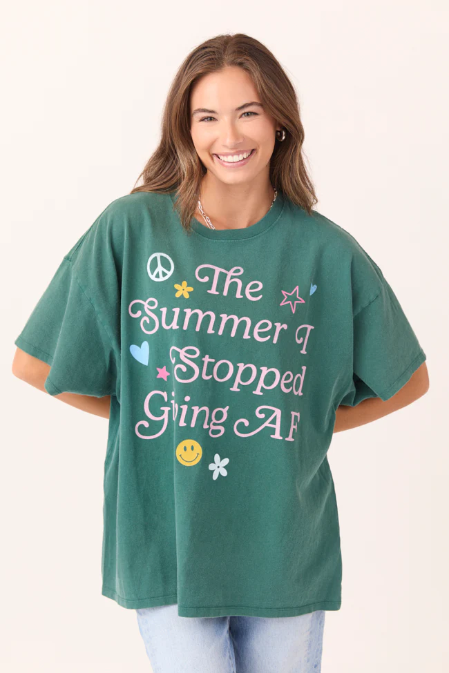 The Summer I Stopped Giving AF Dark Green Oversized Graphic Tee