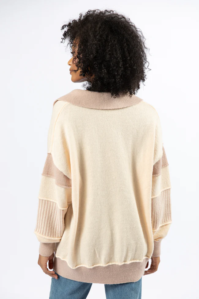 Think About It Cream and Mauve Collared Oversized Sweater