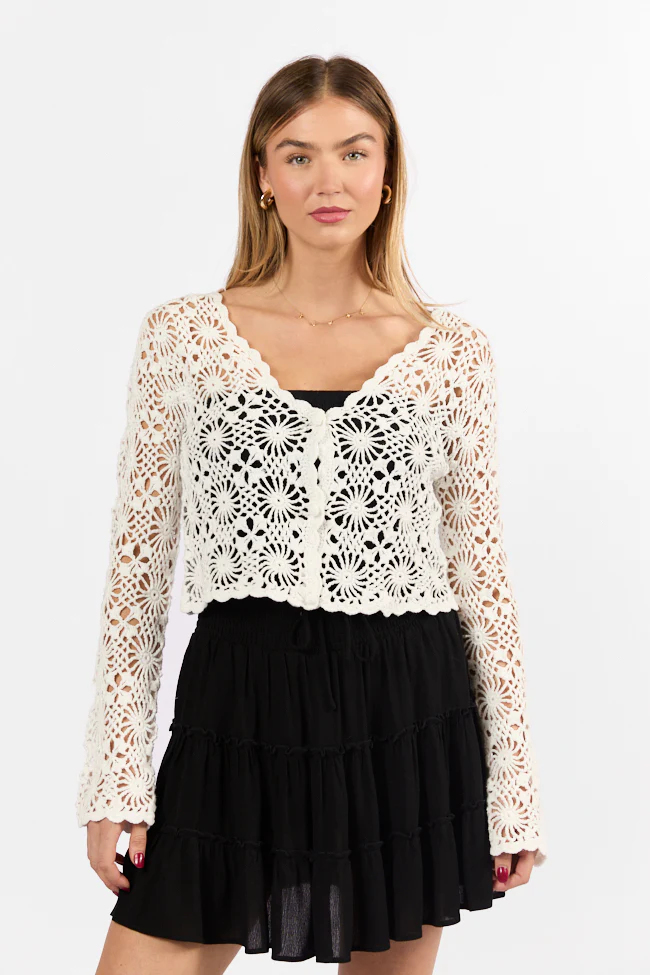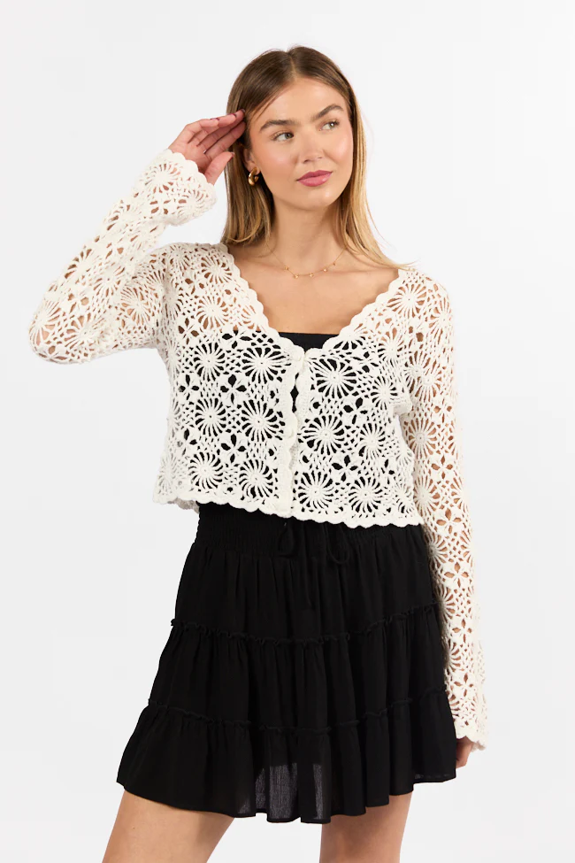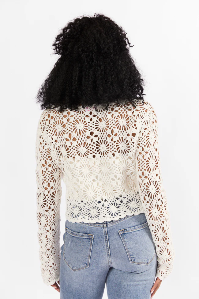 Unbeatable Memories Long Sleeve Ivory Crochet Cardigan FINAL SALE