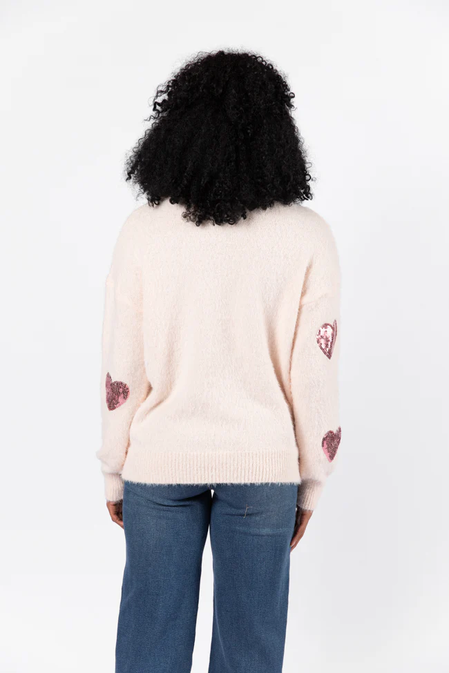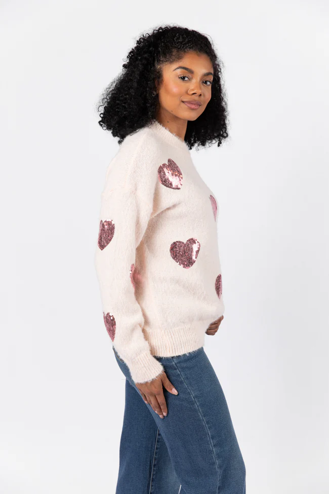 True Romance Blush Sequin Heart Sweater FINAL SALE