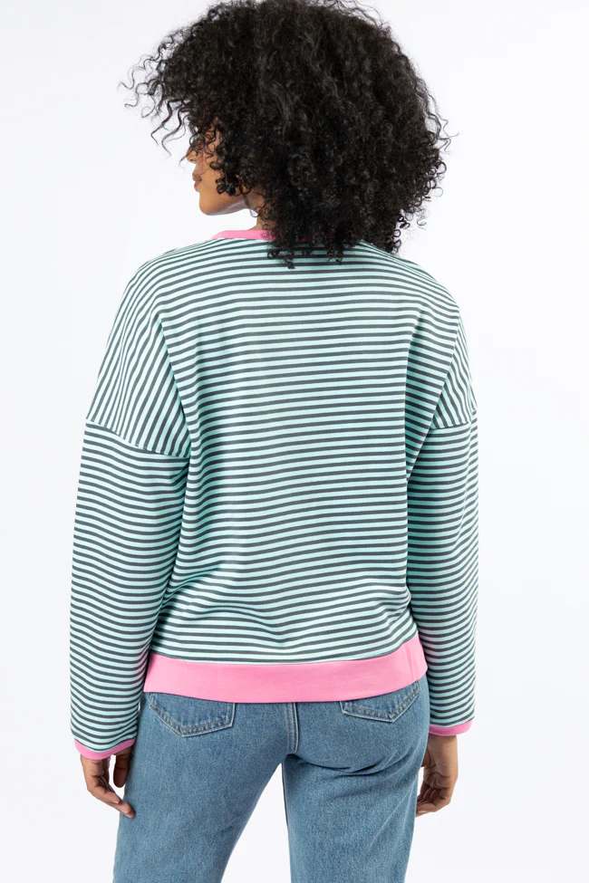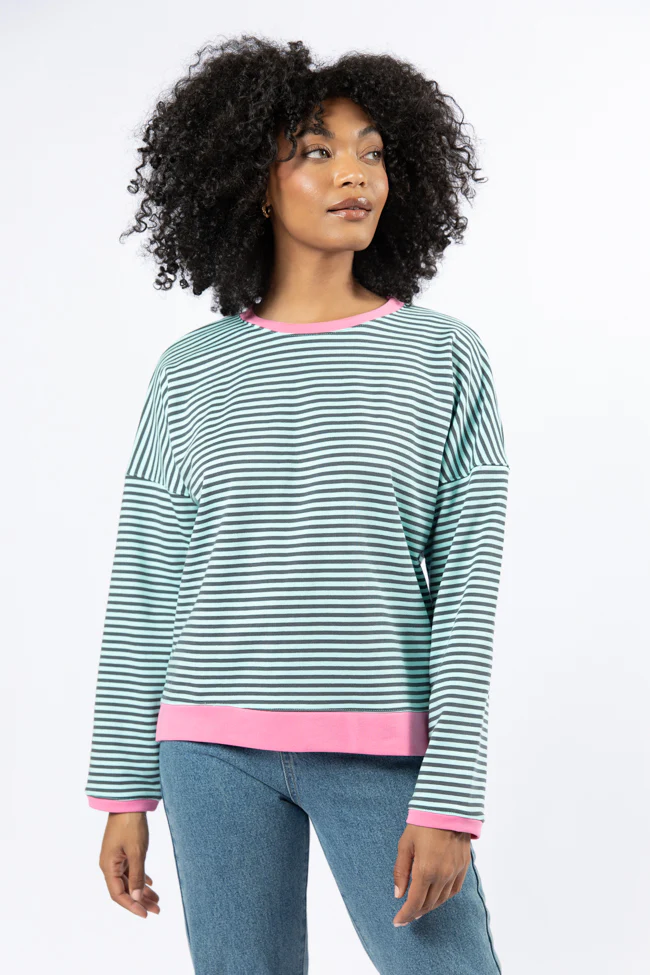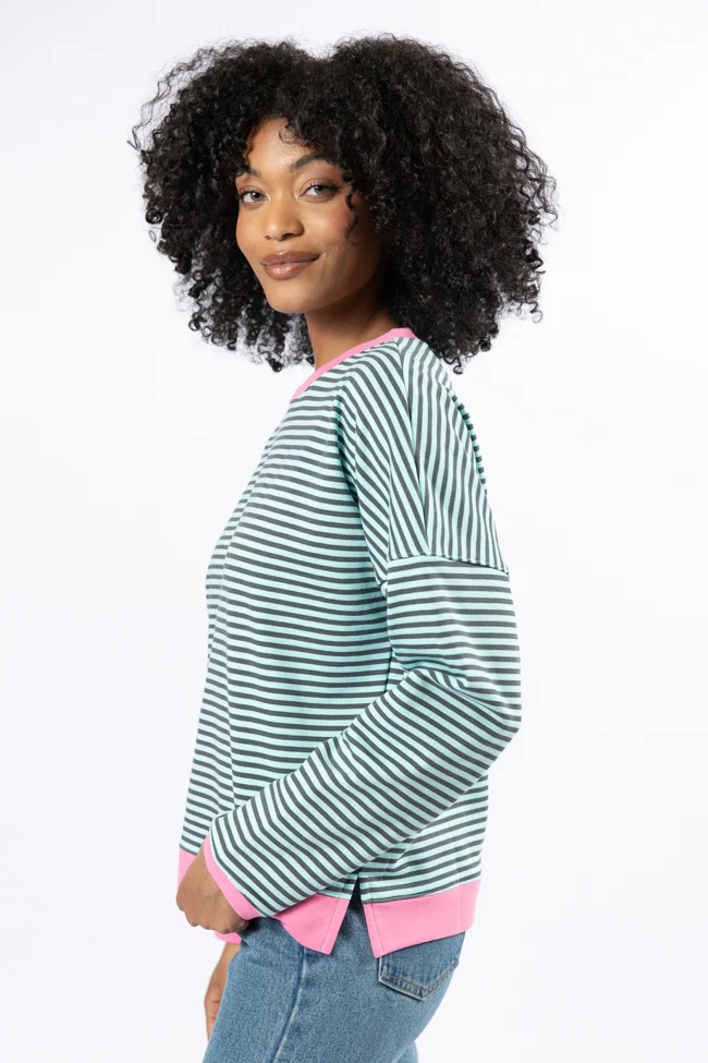 Think On It Pink, Navy, and Charcoal Striped Contrast Trim Pullover FINAL SALE