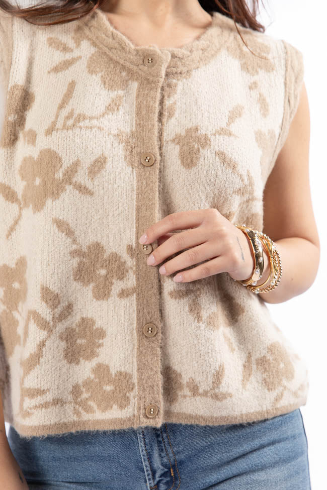 Truly Yours Natural and Taupe Floral Print Sweater Vest FINAL SALE