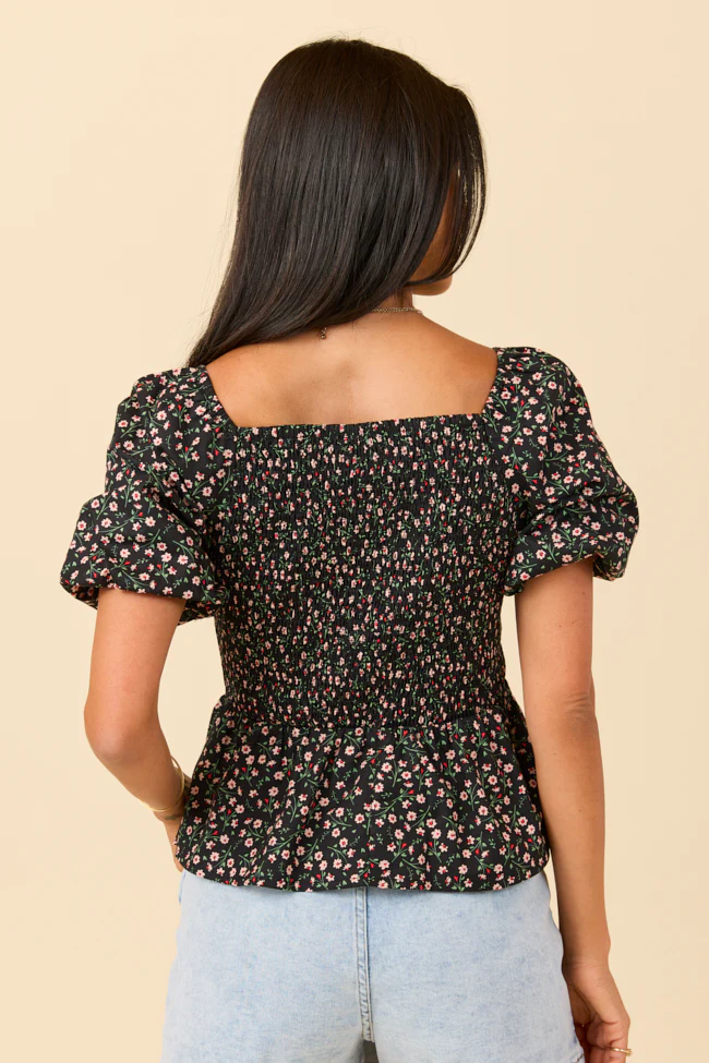 Twist On Things Black Floral Twist Bust Woven Blouse