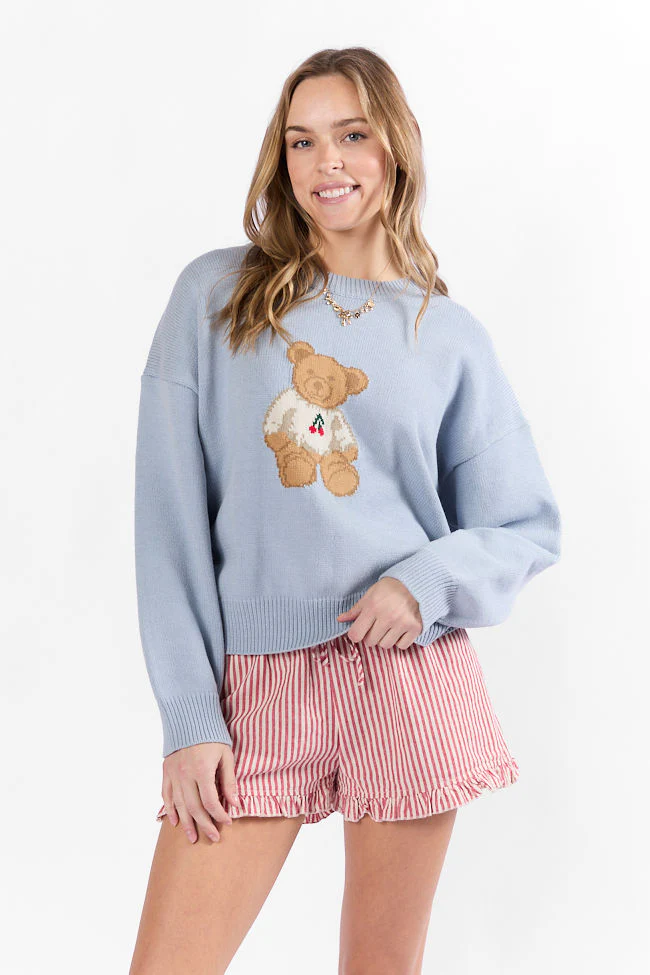 Too Much To Bear Light Blue Cherries Sweater