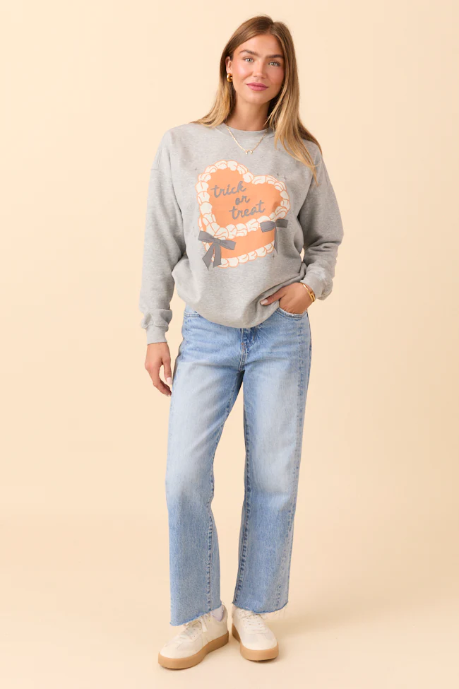 Trick Or Treat Cake Light Grey Graphic Sweatshirt