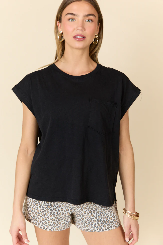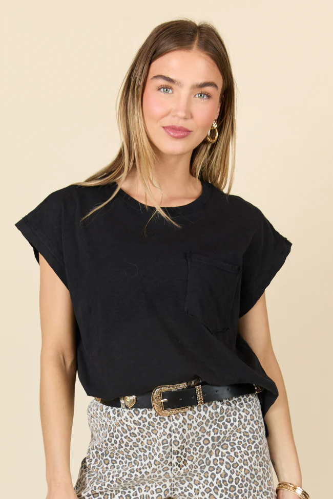 All Washed Up Black Knit Pocket Tee DOORBUSTER